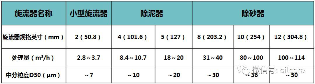 如152.4~304.8mm(6~12英寸)的旋流器稱為“除砂器”,分離點約為40微米,把50.8~152.4mm(2~6英寸)的旋流器叫做“除泥器”,分離點約為15微米。