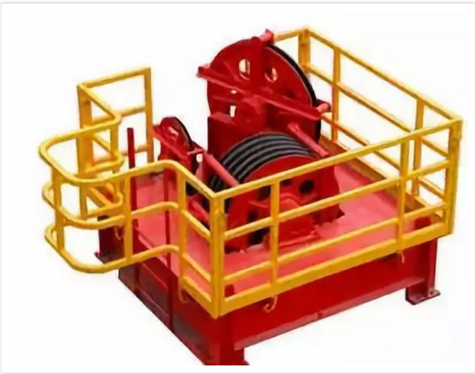 為了起升和下放鉆具、下套管以及控制鉆壓、送進(jìn)鉆具,鉆具配備有起升系統(tǒng)。起升系統(tǒng)包括絞車、輔助剎車、天車、游車、大鉤、鋼絲繩以及吊環(huán)、吊卡、吊鉗、卡瓦等各種工具。起升時,絞車滾筒纏繞鋼絲繩,天車和游車構(gòu)成副滑輪組,大鉤上升通過吊環(huán)、吊卡等工具實現(xiàn)鉆具的提升。下放時,鉆具或套管柱靠自重下降,借助絞車的剎車機構(gòu)和輔助剎車控制大鉤的下放速度。在正常鉆進(jìn)時,通過剎車機構(gòu)控制鉆具的送進(jìn)速度,將鉆具重量的一部分作為鉆壓施加到鉆頭上實現(xiàn)破碎巖層。